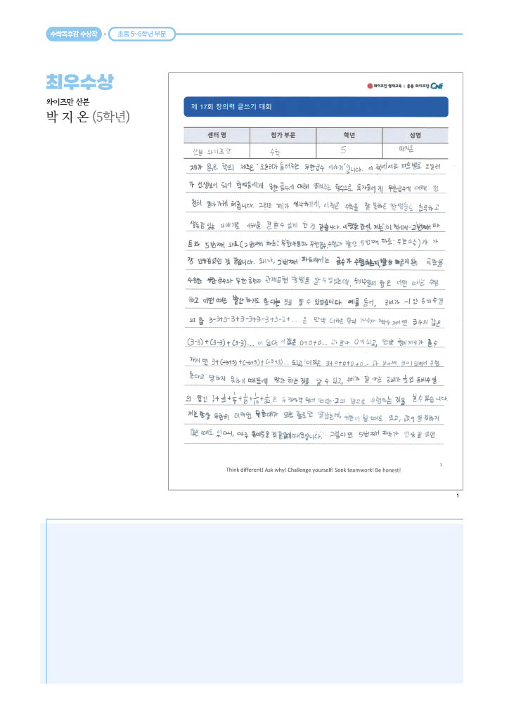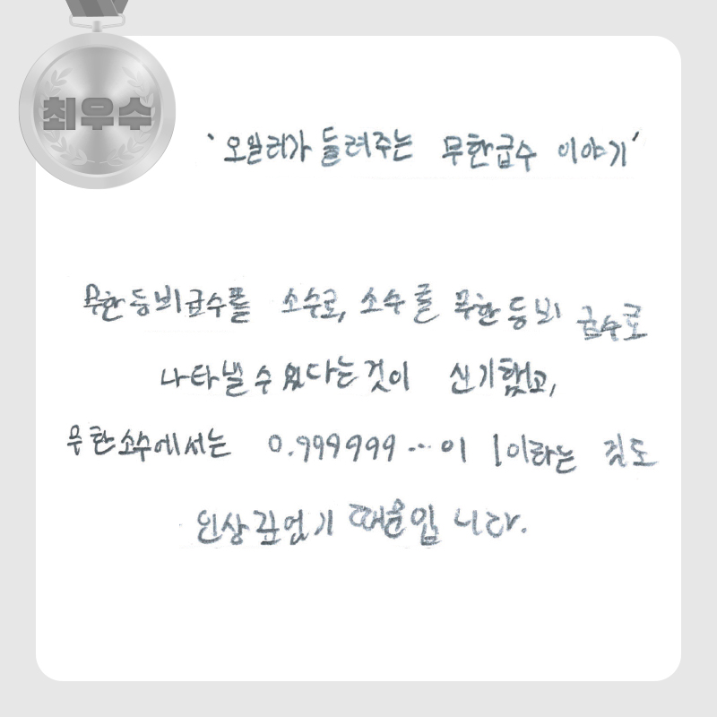 창의력 글쓰기 대회 수학독후감 최우수상