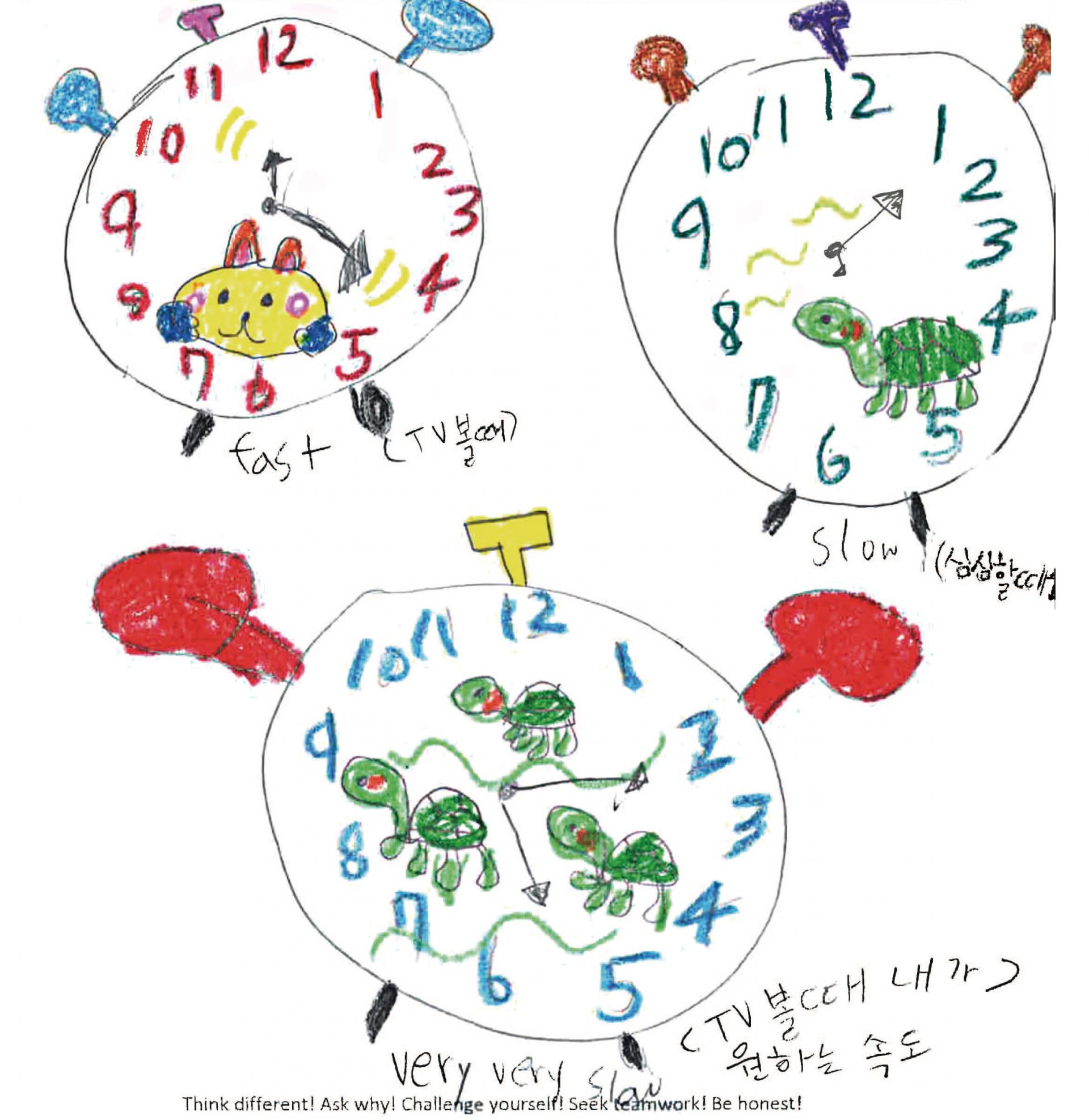 알파짱 수학동화 시계 대장 몽치와 코코를 읽었다. 몽치는 몇 시를 알고 몇 분을 몰랐는데 코코는 몇 시 몇 분도 안다. 코코가 더 시계 대장 같았다. 나는 이미 다 알고 있는데, 학교 가기 전에 엄마가 몇 시 명분에 양치하라고 하면 시계를 보고 그 시간에 한다. 하지만 시계를 보면서 신기한 게 하나 있었다. 왜 TV 볼 때는 시계가 빨리 갈까? 심심할 때는 왜 이렇게 시계가 늦게 갈까? 시계가 항상 같은 속도로 가는 건 아닌 것 같다. 만약 그렇다면 나 TV 볼 때는 시계가 엄청 느리게 가면 좋겠다.