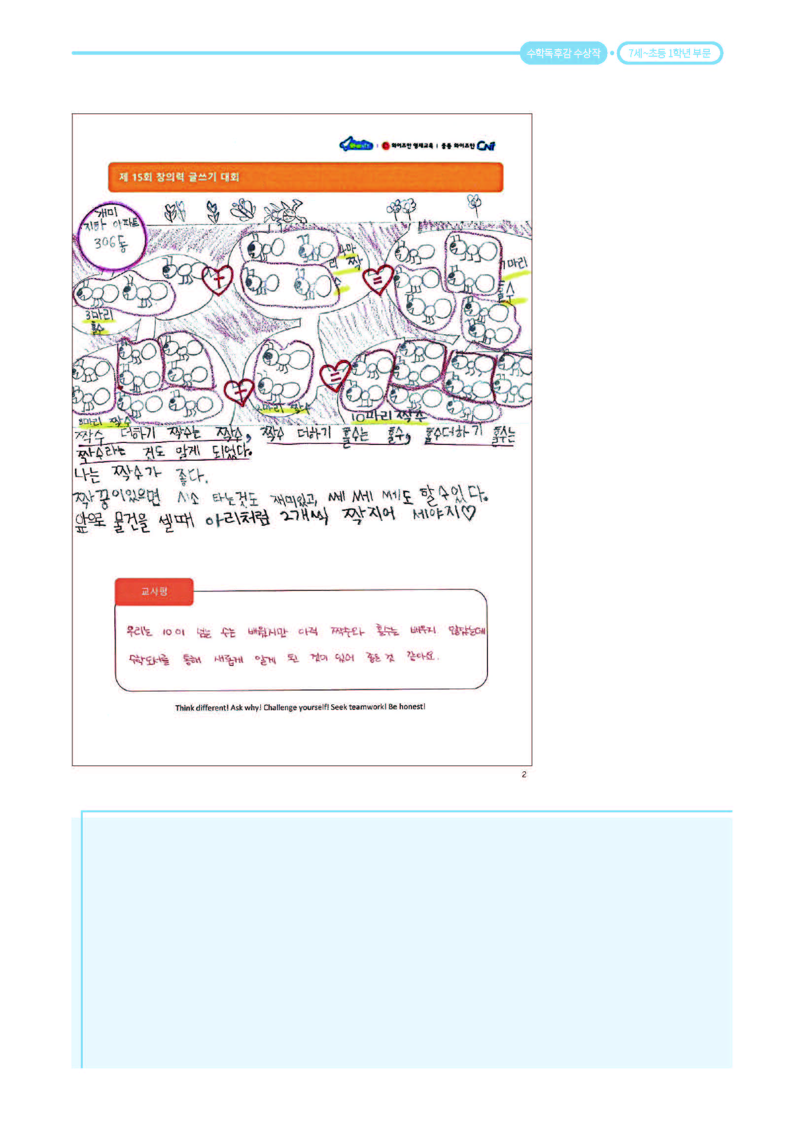 제 15회 창의력 글쓰기 대회 수학 독후감 최우수상와이즈만 영재교육 대전도안센터 1학년 강서하