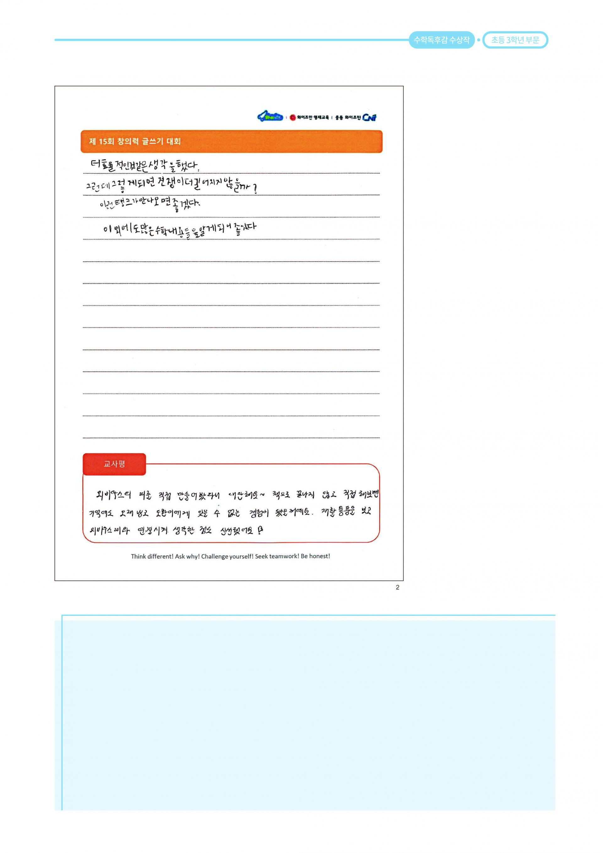 제 15회 창의력 글쓰기 대회 수학 독후감 대상