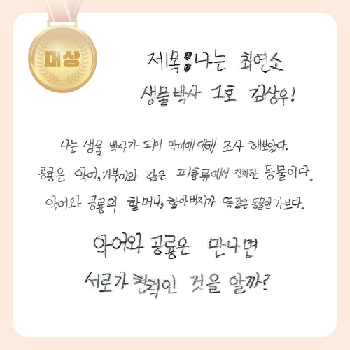 김상우 학생은 <최강왕 무시무시 놀라운 동물 대백과>라는 책을 읽고 과학 독후감을 작성하였습니다.